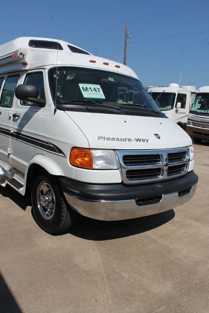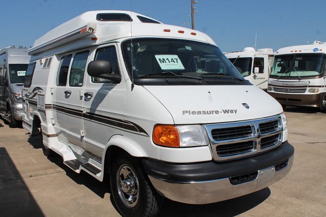 A Must See! This 2001 Pleasure-Way has been garage kept and very well maintained. It has a 5.9l 8 Cyl Dodge Engine On a 3500 Chassis, Features include....Leather Furniture, Onan Gas Generator, 1 Roof A/C, Rear Air Shocks for Leveling, Gas/Elec/12vlt Single Door Refrigerator, Main Awning, CD Changer, TV, DVD Player, Satellite Radio, Outside Shower and 2 Burner Range. Passenger Seat Swivels Around to Face Rear of Unit. Clean, Nice looking Pleasure-Way for the traveling couple. Stop by and take a LOOK!