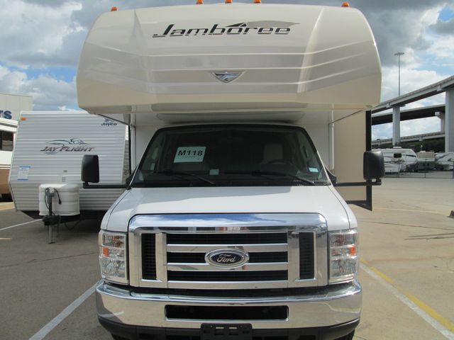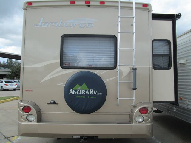 This 2010 Jamboree By Fleetwood is easy to get around in. It has V-10 Ford Engine On a E450 Chassis, Features include....2 Slide-outs, Onan Gas Generator, 1 Roof A/C, Levelers, Back-up Camera, Double Door Refrigerator, Main & Slide Awnings, CD Radio, Heated Tanks, Satellite Dish & Receiver, 2 TVs, DVD Player, Satellite Radio, Outside Shower, Microwave, 3 Burner Range and Oven. Enjoy the views of the lakes and forest of the USA!