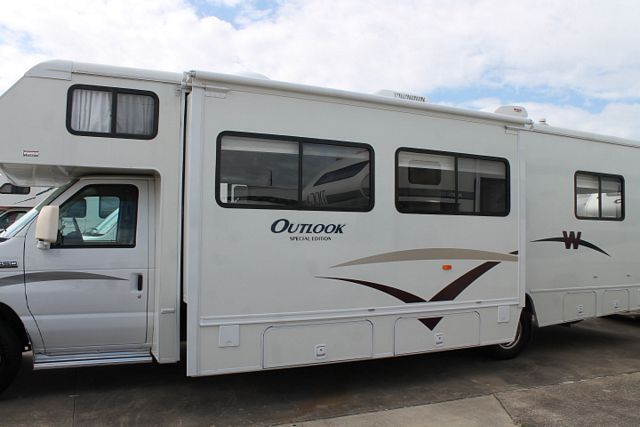 This 2006 Outlook has a V-10 Ford Engine On a E450 Chassis, Options include....1 Slide-out, Onan Gas Generator, 1 Ducted Roof A/C, Double Door Refrigerator, Main & Slide Awnings, Backup Camera, CD Radio, GPS System, Satellite Dish, 2 TVs, DVD Player, Satellite Radio, Outside Shower, Microwave, 3 Burner Range and Oven. Enjoy your travels no matter the destination.