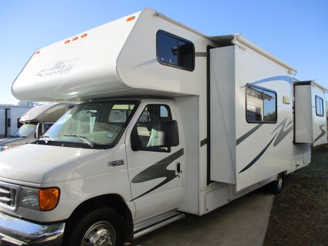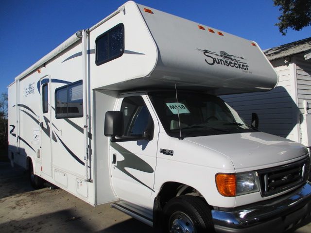 This 2005 Sunseeker has a V10 Ford Engine On a Ford Chassis, 2 Slide-outs, Onan Gas Generator, 1 Ducted Roof A/C, Levelers, Double Door Refrigerator, Main/Win/Sld Awnings, Backup Camera, CD Radio, 2 TVs, DVD Player, Outside Shower, Microwave, 3 Burner Range, Oven. Travel in style on your vacation outings. Let's go RVing!