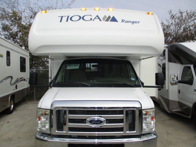 This 2009 Tioga Ranger has an E450 Ford Engine On a Ford Chassis, 1 Slide-out, 4000W Onan Gas Generator, 1 Ducted Air Conditioner, Double Door Gas/110V Dometic Refrigerator, Main/Slide Awnings, CD Radio, Solar Panel, Satellite Dish, TV, Outside Shower, Microwave, 3 Burner Range, Oven, Max Air Covers, Tinted Glass..