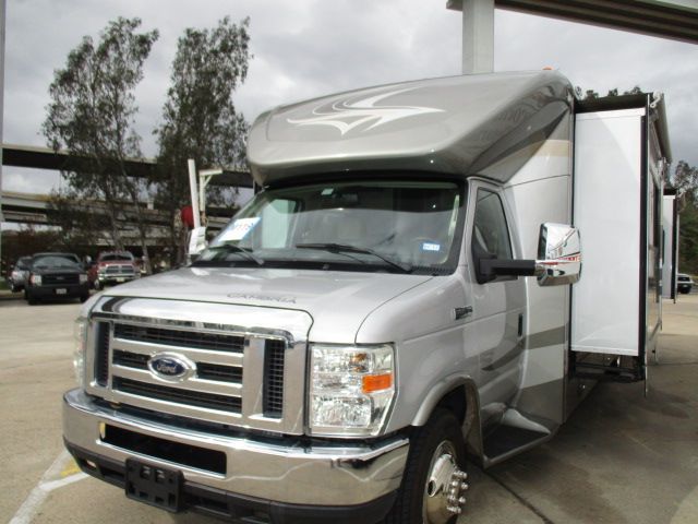 This 2010 Itasca Cambria has a V10 Ford Engine On a Ford 450 Chassis. Comforts include.....3 Slide-outs, 4000W Onan Gas Generator, 1 Ducted Air Conditioner, Levelers, Double Door Gas/110V Refrigerator, Main Awning, Backup Camera, Heated Tanks, Outside Speakers, 2 TVs, 2 DVD Players, Satellite Radio, Outside Shower, Microwave/Convection and 3 Burner Range. Owner added New Tires, Front Stabilizer and Sway Bars for Ease in Driving. A Well Maintained Unit!
