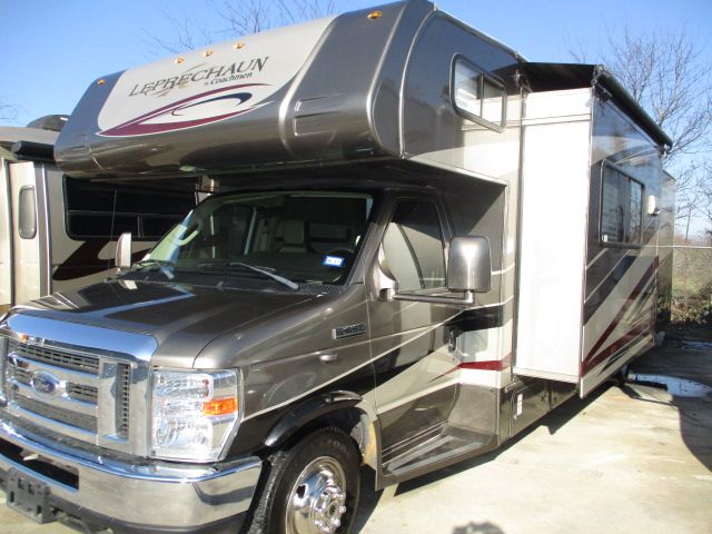 This 2013 Leprechaun has an E450 Ford Engine On a Ford Chassis, 2 Slide-outs, 4000W Onan Gas Generator, 1 Ducted Air Conditioner, Double Door Gas/110V Norcold Refrigerator, Automatic Main Awning And Slide Awning, Backup Camera, CD Radio, TV, DVD Player, Outside Shower, Microwave, 3 Burner Range, Bunk House plan. Great RV for Family Travel..