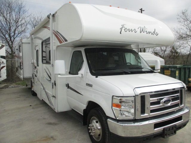 This 2011 Fourwinds has a V 10 Ford Engine On a Ford Chassis, 2 Slide-outs, Onan Gas Generator, 1 Ducted Air Conditioner, Double Door Gas/110V Norcold Refrigerator, Main/Slide Awnings, Backup Camera, CD Radio, Satellite Dish & Receiver, 4 TVs, 3 DVD Players, Satellite Radio, Outside Shower, Microwave, 3 Burner Range, Oven. Enjoy the comforts of vacationing in the comforts of this motorhome. Let's go RVing!