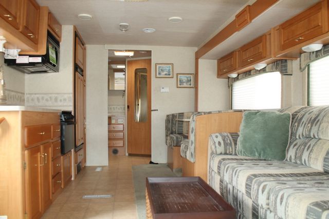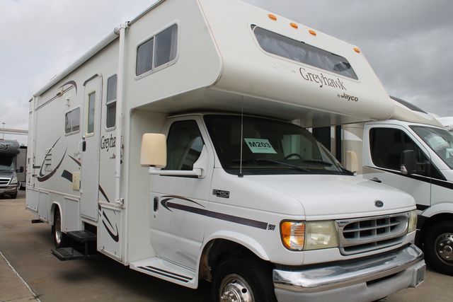 This 2002 Jayco Greyhawk is easy to get around in with plenty of up-front sitting. It has a V-10 Ford Engine On a Ford Chassis, 1 Slide-out, Onan Gas Generator, 1 Ducted Air Conditioner, Double Door Gas/110V Norcold Refrigerator, Main Awning, Cassette/CD Radio, Outside Stereo, TV, Outside Shower, Microwave, 3 Burner Range and Oven. Bonus: New Tires and Brakes all Around. Its Ready to hit the highway.