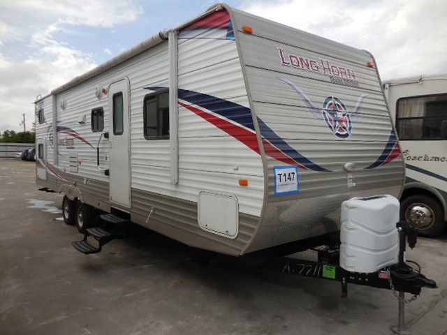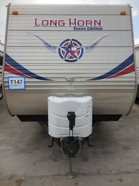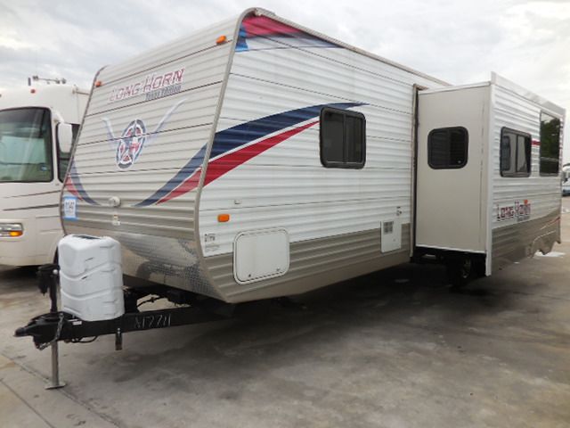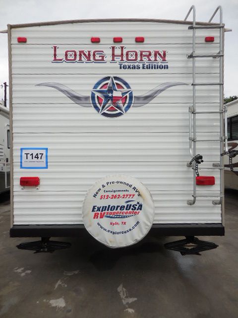 This 2013 Longhorn Texas Edition has an Electric Tongue Jack, 1 Slide-out, 1 Roof A/C, Double Door Refrigerator, Main Awning, CD Radio, Outside Speakers, DVD Player, Outside Shower, Microwave, 3 Burner Range, Oven.This RV has the popular bunk house floor plan and is perfect for the family get aways.