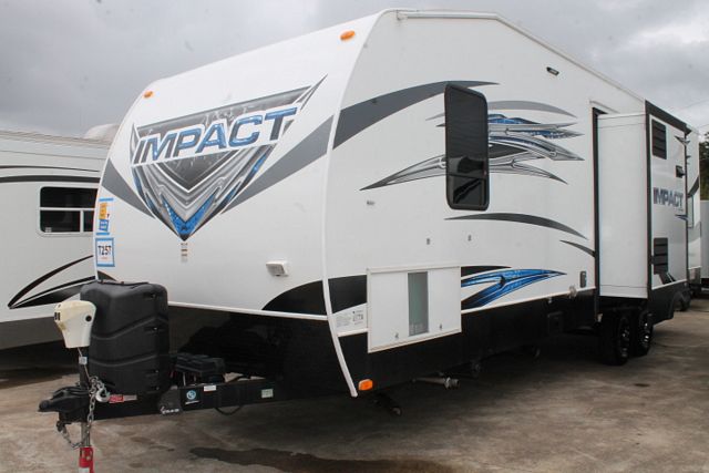 Wow! Large Enclosed Cargo Area On This 2015 Impact Toyhauler By Keystone. With plenty of sleeping accomodations, sleeping up to 7 adults in this lovely bunkhouse, Comforts include....An Electric Tongue Jack, 2 Slide-outs, 5.5 Onan Gas Generator, 2 Ducted Roof A/Cs, Double Door Refrigerator, Main Awning, AM/FM/CD W/Mp3, TV, DVD Player, Outside Shower and Speakers, Microwave, 3 Burner Range and Oven. Bonus! 30 gal Fueling Station and Dual Pane Frameless Windows, Break away from the everyday hussle. Get out and enjoy the great outdoors. Let's hit some dirt!