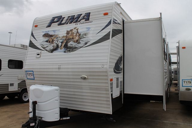 This 2013 Puma Bunkhouse By Palomino Sleeps up to 10 with a bath an half. It's Options Include....4 Slide-outs, 2 Roof A/Cs, Double Door Refrigerator, Main Awning, Washer/Dryer, CD Radio, DVD Player, Outside Shower, Microwave, 4 Burner Range and Oven. Large roomy trailer thats perfect to park at the lake or any other destination.