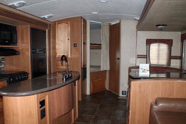 This 2013 Sunset Trail By Crossroads sleeps up to 9 with a double sized and single bunk area, Features include....2 Slide-outs, 1 Ducted Roof A/C, Double Door Refrigerator, Electric Main Awning with Shade Extension and LED Lighting, Electric Fireplace, Surge Guard Automatic LCD Surge Protector, CD Radio, Satellite Dish, Outside Speakers, TV, Winegard Portable Satellite Dish, DVD Player, Outside Shower, Microwave, 3 Burner Range and Oven. Enjoy the Outside Kitchen with Refrigerator, 2 Burner Stove Top, Sink with Hot and Cold Water and Grill for Cooking! Also includes an Electric Tongue Jack for ease of hitching and unhitching.