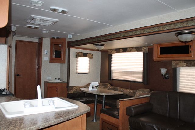 This 2013 Gulfstream Kingsport has Family Friendly Bunkhouse floor plan thats ready to hit the highway, Features include....1 Slide-out, 1 Ducted Roof A/C, Double Door Refrigerator, Main Awning, CD Radio, Outside Speakers, Microwave, 3 Burner Range and Oven. Get out and enjoy the great outdoors.
