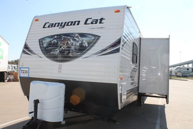 This 2014 Canyon Cat Double Size Bed Bunkhouse By Palomino is great for all of your traveling needs. Features include....1 Slide-out, 1 Ducted Roof A/C, Double Door Refrigerator, Main Awning, CD Radio, Outside Shower, Microwave, 3 Burner Range and Oven. Sleeps up to 10 and is ready to hit the highway. Get out and enjoy the great outdoors. Go CAMPing!