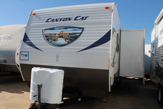 This 2014 Canyon Cat with Double bunks By Palomino has a a nice floor plan for the whole family, It's Features include....1 Slide-out, 1 Ducted Roof A/C, Double Door Refrigerator, Main Awning, CD Radio, Outside Shower, Microwave, 3 Burner Range and Oven. Spend quailty time together. Get out and go camping!