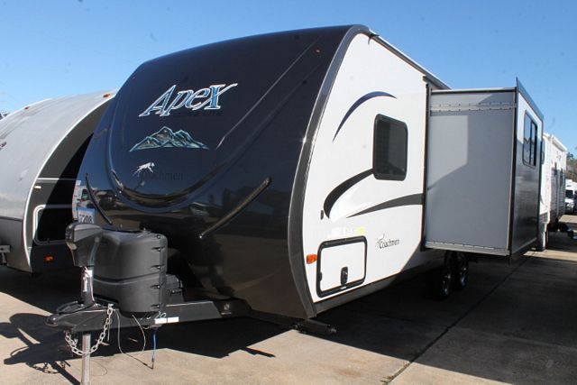 This 2016 Apex Ultra Lite By Coachmen has an Electric Tongue Jack and Outside Kitchen, It's comforts include....2 Slide-outs, 1 Roof A/C, Double Door Refrigerator, Main Awning, CD Radio, TV, DVD Player, Outside Shower, Microwave, 3 Burner Range and Oven. Perfect for a couples retreat or small family get away. A Must See!