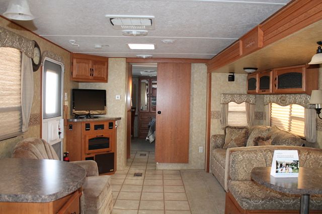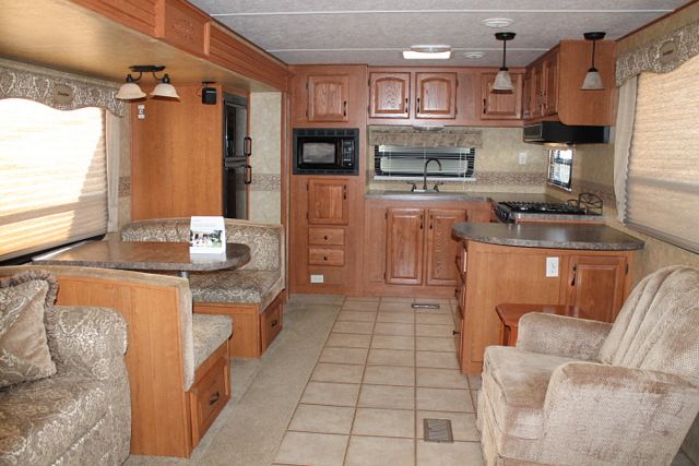 This 2008 Sandpiper By Forest River has an Electric Tongue Jack for ease in hitching and unhitching, Features include....2 Slide-outs, 2 Roof A/Cs, Double Door Refrigerator, Main & Slide Awnings, CD Radio, Satellite Dish, Outside Speakers, TV, DVD Player, Microwave, 3 Burner Range and Oven. Has a Front Kitchen floor plan with a Rear Bedroom for plenty of privacy for all. Nice travel trailer to park by the lake or full time living. Stop by and take a look!