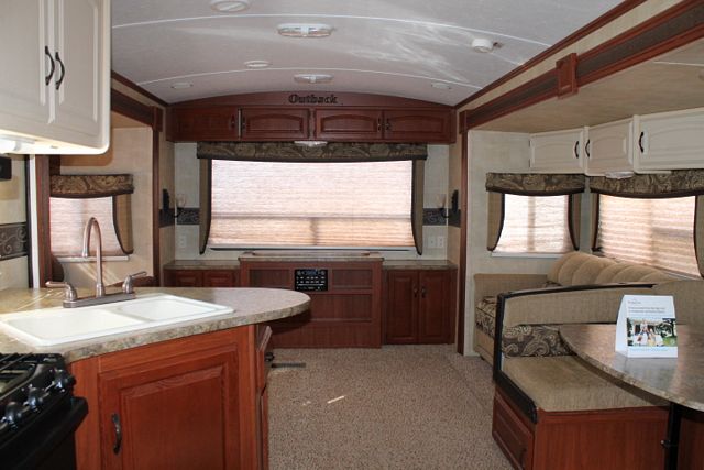 This 2011 Outback 10th Anniversary By Keystone has a very comfortable floor plan. Options include....3 Slide-outs, 1 Ducted Roof A/C, Double Door Refrigerator, Main Awning, CD Radio, Heated Tanks, Outside Speakers, TV, DVD Player, Microwave, 3 Burner Range and Oven. Family friendly travel trailer that great for last minute trips.