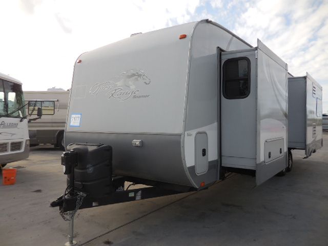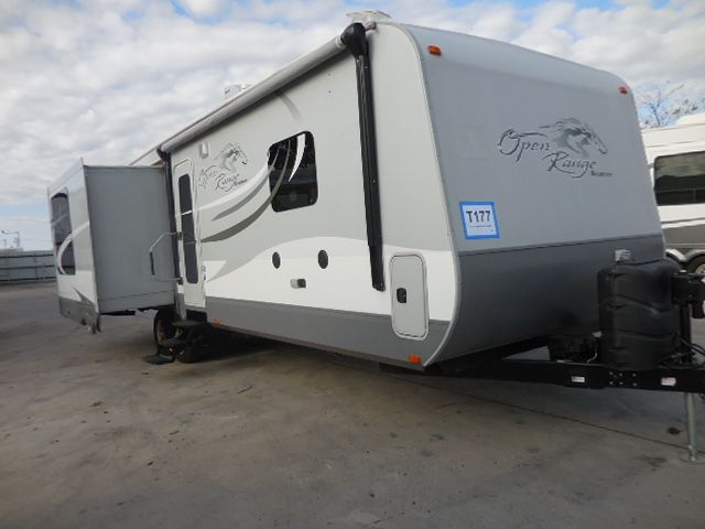 This 2013 Open Range Roamer has an Electric Tongue Jack, 3 Slide-outs, 2 Ducted Roof A/Cs, Double Door Refrigerator, Main Awning, CD Radio, Outside Speakers, TV, DVD Player, Outside Shower, Microwave, 3 Burner Range, Oven and ample storage in bedroom.,Enjoy your time at the campground in this quality built travel trailer. Let's go RVing.