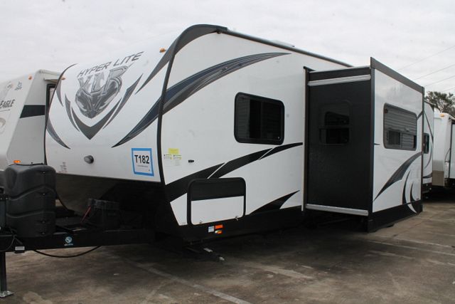 Travel Trailer Toyhauler! This 2015 Hyper Lite Xlr By Forest River has a nice size toyhauler thats great for all your toys, Options include....Options include....1 Slide-out, 1 Ducted Roof A/C, Double Door Refrigerator, Main Awning, CD Radio, Heated Tanks, Outside Shower and Speakers, TV, DVD Player, Outside Shower and 2 Burner Range. Get out and enjoy the great outdoors.