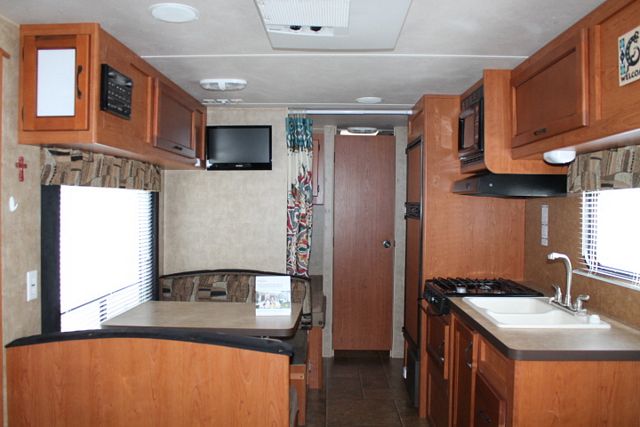 This 2012 Grey Wolf Bunkhouse By Cherokee has an Electric Tongue Jack for ease in hitching, Features include....1 Roof A/C, Double Door Refrigerator, Main Awning, CD Radio, Outside Speakers, TV, DVD Player, Microwave, 3 Burner Range and Oven. Nice family friendly floor plan thats ready to travel.