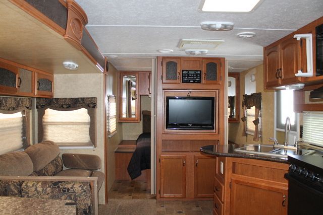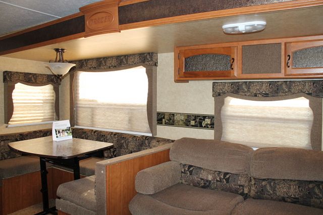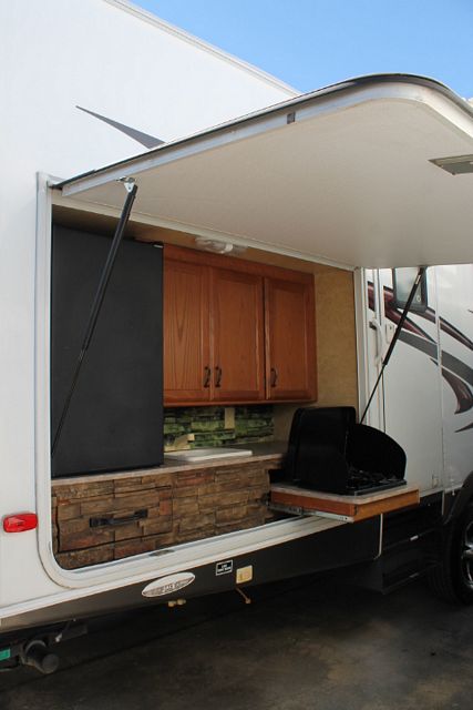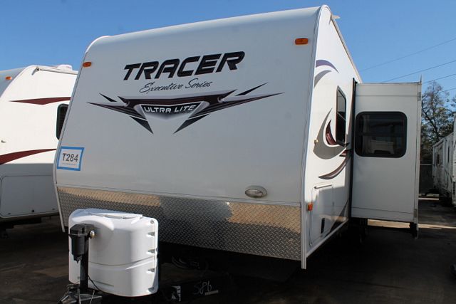 This 2012 Tracer Executive By Forest River has an Electric Tongue Jack for ease in hitching and unhitching, Features include....2 Slide-outs, 1 Roof A/C, Double Door Refrigerator, Main Awning, CD Radio, Outside Shower and Speakers, TV, DVD Player, Microwave, 3 Burner Range and Oven. Also includes an Outdoor Kitchen for great family meals.