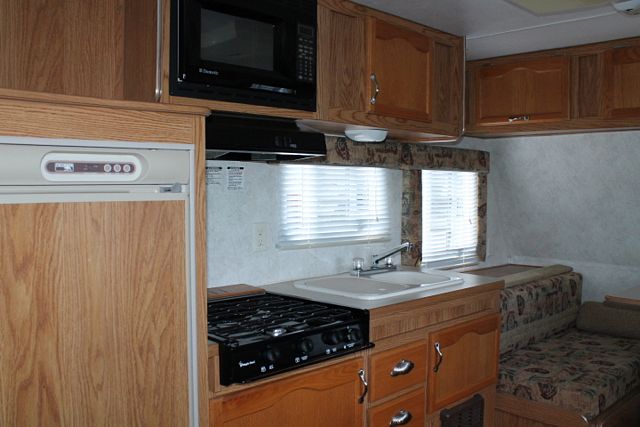 Light Weight! This 2004 Ameri Lite By Gulfstream is perfect for the small size family with it's two double beds and is great for last minute trips. Options include....1 Roof A/C, Single Door Refrigerator, Main Awning, TV, Outside Shower, Microwave and 3 Burner Range. Hitch up and hit the highway to your favorite spot.