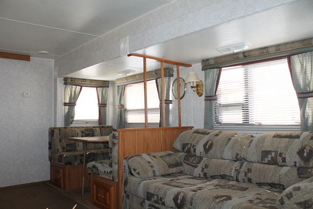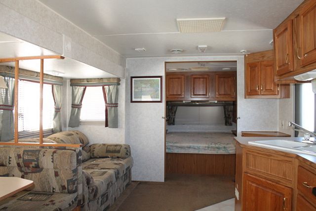 This well maintained and very clean 2001 Jayco Eagle could be yours. Options include....1 Slide-out, 1 Roof A/C, Double Door Refrigerator, Main Awning, CD Radio, Outside Shower, Microwave, 3 Burner Range and Oven. Also includes an Electric Tongue Jack for ease in hitching and unhitching. If your looking for a nice smaller size Travel Trailer this is it. Stop by and take a LOOK today!