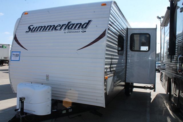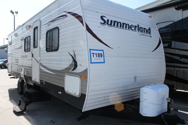 This 2012 Summerland Bunkhouse By Keystone Sleeps up to 8 and is perfect for a family get away. It's options include....1 Slide-out, 1 Ducted Roof A/C, Double Door Refrigerator, Main & Slide Awnings, AM/FM CD Radio, Outside Shower and Speakers, DVD Player, Microwave, 3 Burner Range and Oven. Head out to your favorite spot with this Summerland in Tow.