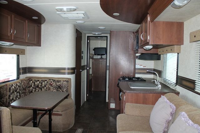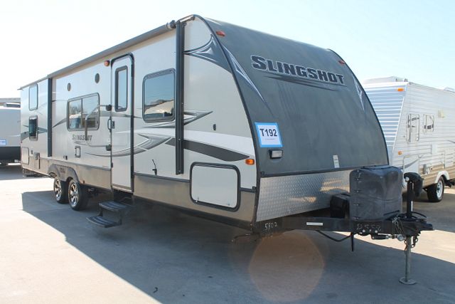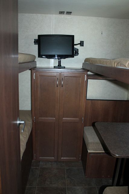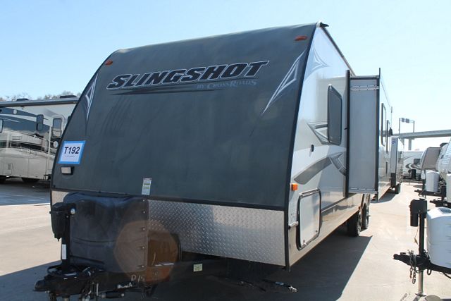 This 2012 Slingshot By Crossroads with bunks sleeps up to 12 and is great for all of your traveling needs. Features include....Electric Tongue Jack, 1 Slide-out, 1 Ducted Roof A/C, Double Door Refrigerator, Main Awning, CD Radio, Satellite Dish, Outside Speakers, 2 TVs, DVD Player, Outside Shower, Microwave, 3 Burner Range and Oven. Gather family and friends then hit the road to your favorite spot.