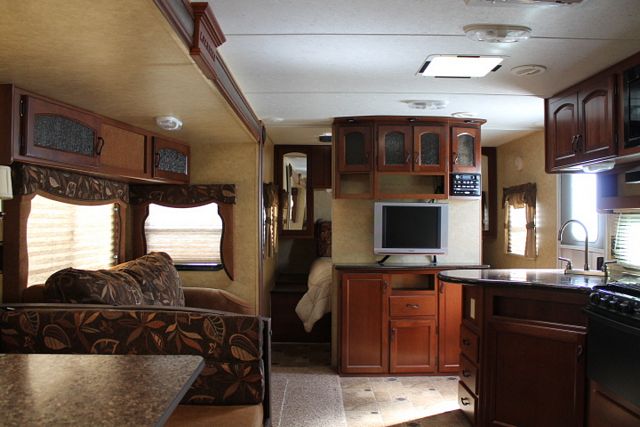 This Well Miantained 2012 Lacrosse By Forest River Sleeps up to 12 with it's large roomy bunkhouse floor plan, Options include....2 Slide-outs, 1 Ducted Roof A/C, Double Door Refrigerator, Main Awning, CD Radio, Heated Tanks, TV, DVD Player, Microwave, 3 Burner Range and Oven. Also Includes....Electric Tongue Jack, Outside Speakers, Shower and Outdoors Kitchen with grill for great family meals.