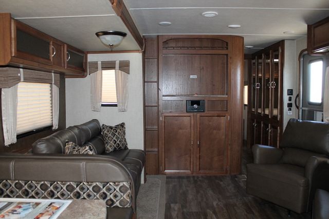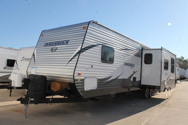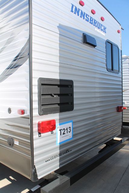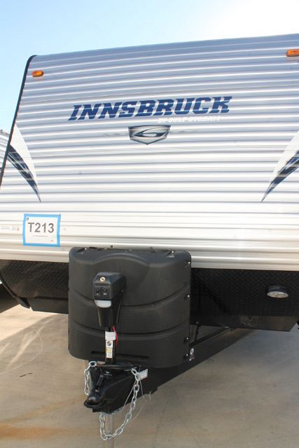 Wonderful Designed 2016 Gulfstream Innsbruck with a Huge Rear Kitchen!! Tons of counter and cabinet space, power Main awning, power tongue jack, power stabilizer jacks, heated and enclosed underbelly, CD stereo with inside/outside speakers, DVD, front private queen bedroom with rear doors!! Huge deep slide out with leather furniture, leather recliners, 1 Ducted Roof A/C, Double Door Refrigerator, Outside Shower, Microwave, 3 Burner Range, Oven and Huge Windows, you will love this travel trailers floor plan!! Stop by today and take This Wonderful Innsbruck home with you!