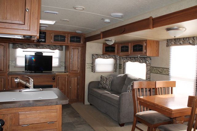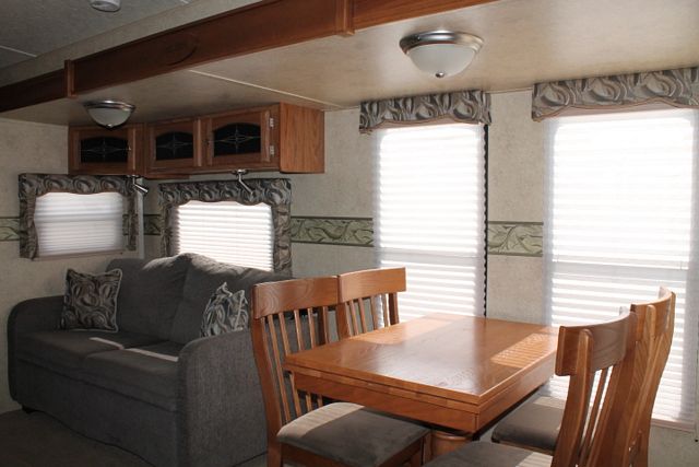 This 2014 Flagstaff Classic By Forest River has a nice layout thats very comfortable. Options include....3 Slide-outs, 1 Ducted Roof A/C, Double Door Refrigerator, Main Awning, CD Radio, Outside Shower and Speakers, DVD Player, Fireplace, Microwave, 3 Burner Range and Oven. Also includes an Electric Tongue Jack for ease in hitching and unhitching. Get out and go CAMPing!