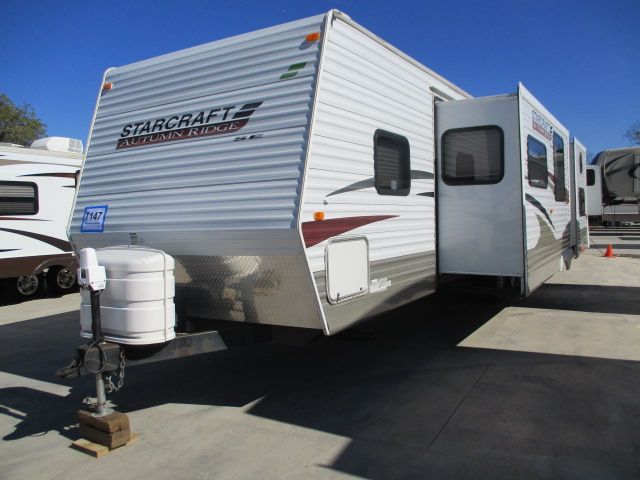 This 2010 Starcraft/Autumn Ridge has an Electric Tongue Jack, 2 Slide-outs, 1 Ducted Roof A/C, Double Door Refrigerator, Main Awning, CD Radio, Outside Speakers, TV, DVD Player, Outside Shower, 3 Burner Range, Oven. Great family floorplan for building a lifetime of memories. Let's go RVing!