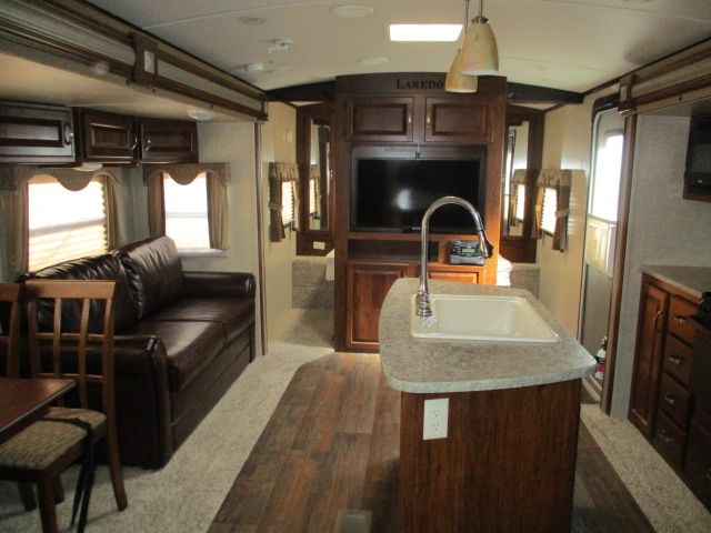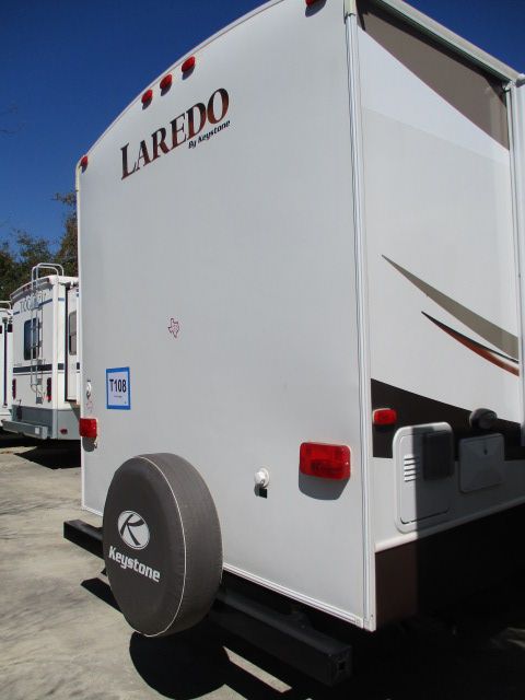 This 2014 Laredo has an Electric Tongue Jack, 2 Slide-outs, 1 Ducted Roof A/C, Double Door Refrigerator, Main Awning, CD Radio, Outside Speakers, TV, DVD Player, Outside Shower, Microwave, 3 Burner Range, Oven. Beautiful travel trailer for week-end getaways or for extended vacations accross the USA. Let't go RVing!