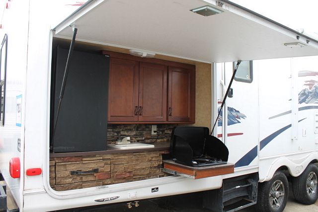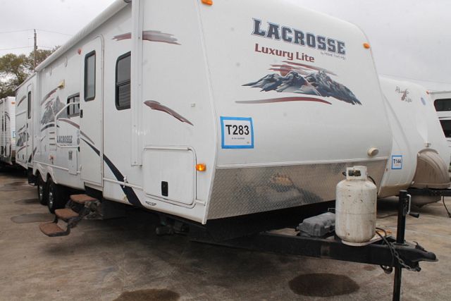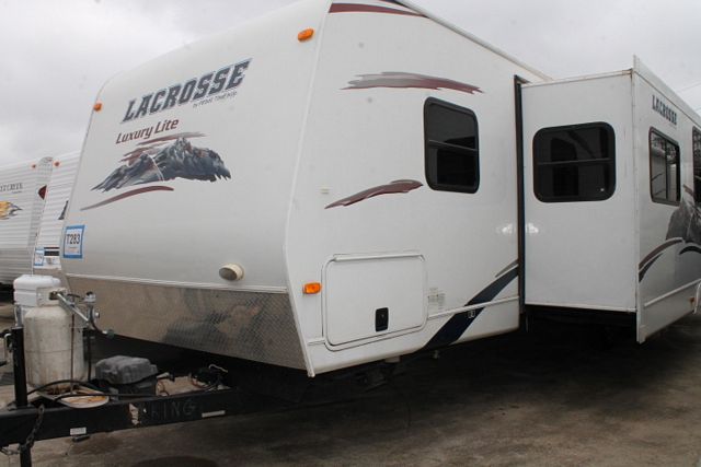 This 2011 Lacrosse Bunkhouse By Forest River has a family friendly floor plan. It's Options include....2 Slide-outs, 1 Ducted Roof A/C, Double Door Refrigerator, Main Awning, CD Radio, Heated Tanks, Outside Shower and Speakers, TV, DVD Player, Microwave, 3 Burner Range and Oven. Also includes an Outdoor Kitchen for great family meals.