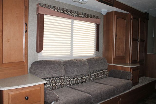 This Nearly New 2014 Freedom Express By Coachmen has a rear kitchen floor plan and sleeps up to 6.. It's Fabulous Features include....Electric Tongue Jack, 1 Slide-out, 1 Roof A/C, Double Door Refrigerator, Main Awning, Outside Shower and Speakers, TV, DVD Player, Microwave, 3 Burner Range and Oven. Spend quailty time together and Enjoy!