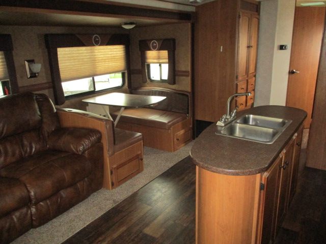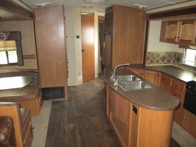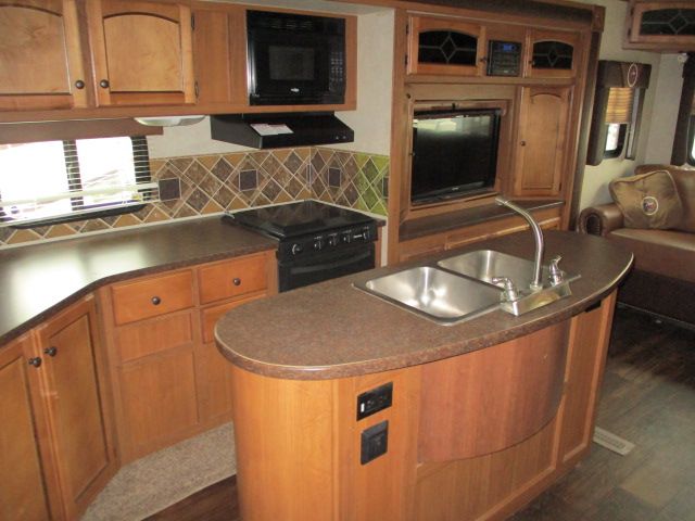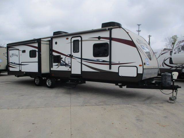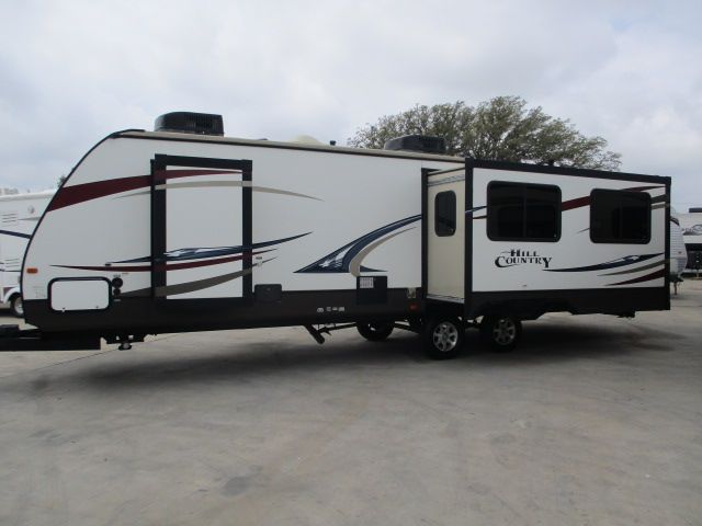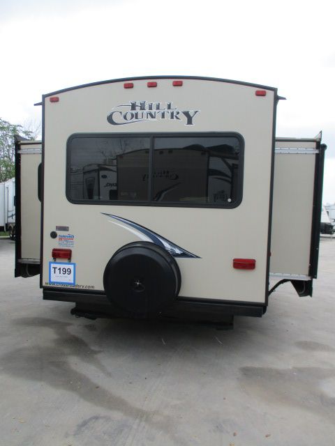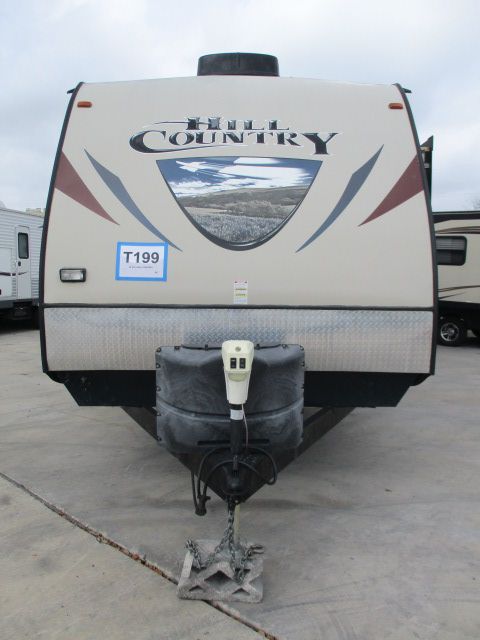 This 2013 Hill Country has an Electric Tongue Jack, 3 Slide-outs, 2-Ducted Roof A/Cs, 2-Door Refrigerator, Main & Slide Awnings, CD Radio, Outside Entertainment System, TV, DVD Player, Outdoor Kitchen, Outside Shower, Microwave, 3 Burner Range, Oven. What a great floor plan! Life on the road will be a wonderful experience!