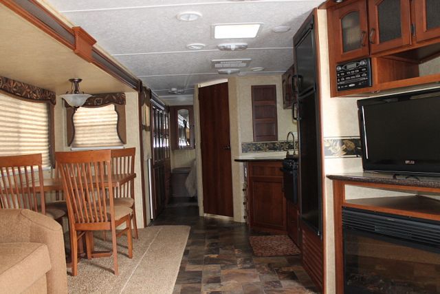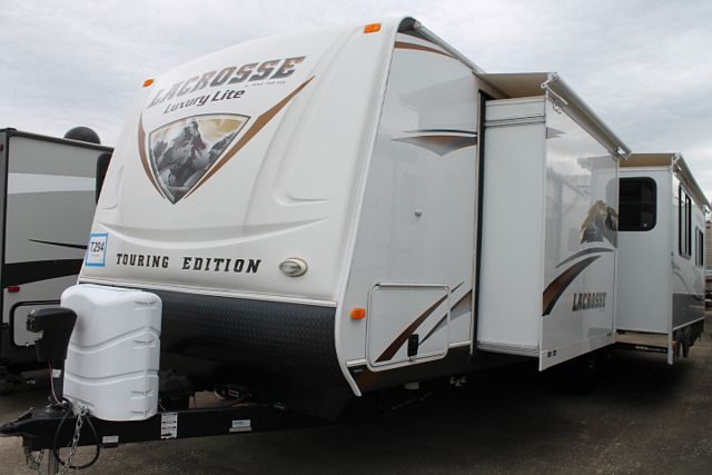 This well maintained 2012 Lacrosse By Primetime has a Trail Air Suspension for a smoother tow experience, It's Features include....2 Slide-outs, 1 Roof A/C, Double Door Refrigerator, Main & Slide Awnings, CD Radio, Outside Speakers, Fireplace, TV, DVD Player, Microwave, 3 Burner Range and Oven. Includes Electric Tongue Jack and Electric Stabilizers that sure make setting up or taking down an ease. Wow! Also includes a BBQ grill for great family meals. Don't miss out on this Lacrosse. Stop by TODAY!