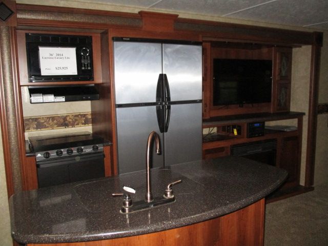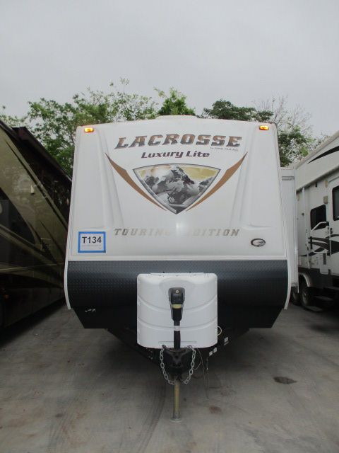 This 2014 Lacrosse Luxury Lite has an Electric Tongue Jack, 3 Slide-outs, 2 Ducted Roof A/Cs, 4 Door Refrigerator, Main Awning, CD Radio, Outside Speakers, TV, DVD Player, Outside Shower, Microwave, 3 Burner Range, Oven/ Enjoy your home away from home on the long vacation outings. Let's go RVing!