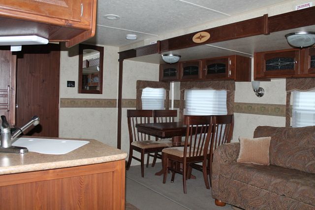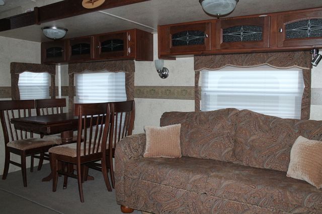 This 2011 Flagstaff By Forest River has a very roomy layout and plenty of storage, Options include....1 Slide-out, 1 Ducted Roof A/C, Double Door Refrigerator, Main Awning, CD Radio, Heated Tanks, Outside Speakers, 3 TVs, DVD Player, Outside Shower, Microwave and 3 Burner Range. Also has an Outside Kitchen and Electric Tongue Jack. Get ready for great adventures.