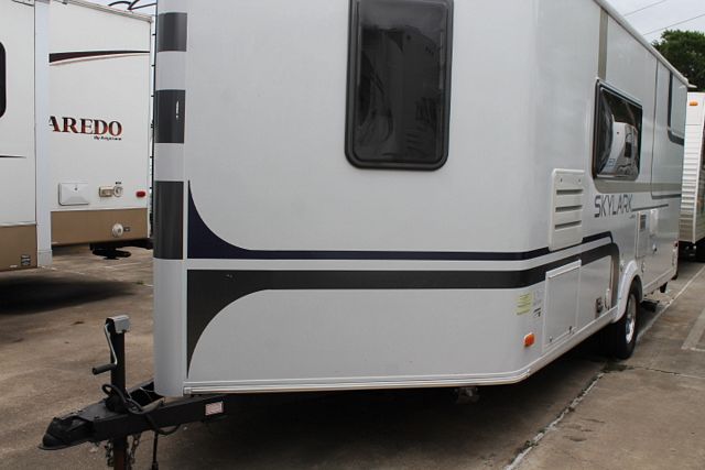 This 2011 Jayco Skylark has the Light weight, Aerodynamic Profile with it's V-Shaped front kitchen Floor plan. Features include....1 Roof A/C, Single Door Refrigerator, Main Awning, CD Radio, DVD Player, Outside Shower, Convection Microwave and 2 Burner Range. Sleeps up to 6 with all the comforts needed for some great adventures. Make CAMPing a part of your life today.