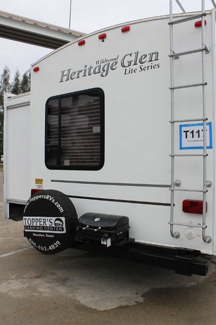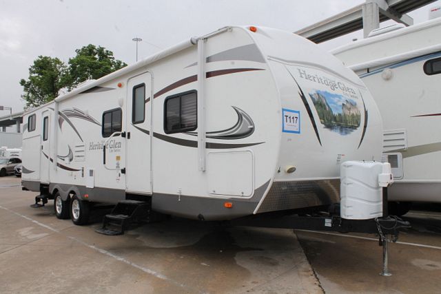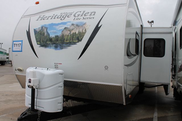 This 2013 Wildwood Heriage Glen By Forest River has an Electric Tongue Jack for ease in hitching and unhitching, Features include....2 Slide-outs, 1 Roof A/C, Double Door Refrigerator, Main Awning, Cassette/CD Radio, TV, DVD Player, Outside Shower, Microwave and 3 Burner Range. Also includes and Outdoors Kitchen for great family meals. Spend quailty time with your family and friends.