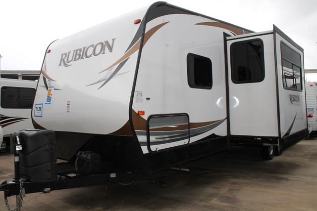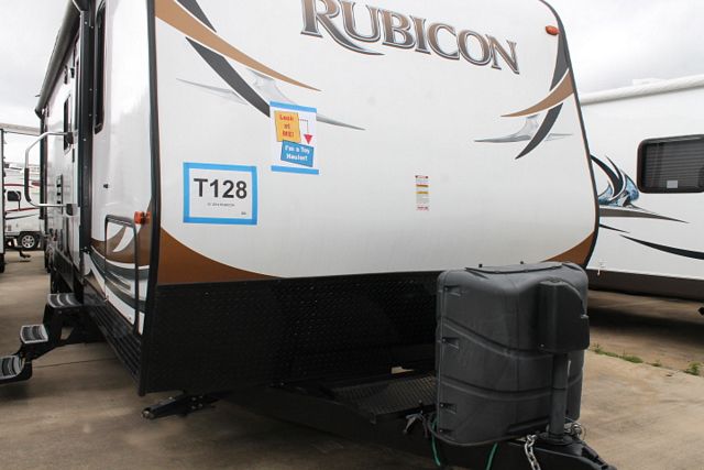 Wonderful Toyhauler, Bunkhouse ! This Nearly New 2014 Rubicon By Dutchmen has nice layout that great for any weekend get away or last minute trips. It's Options include.... Electric Tongue Jack, 35 Galon Fuel station, 1 Slide-out, Onan Gas Generator, 1 Roof A/C, Double Door Refrigerator, Main Awning, CD Radio, Outside Shower and Speakers, TV, DVD Player, Microwave and 3 Burner Range. Hit the Road to some great Adventures with this Rubicon in Tow. A Must See !