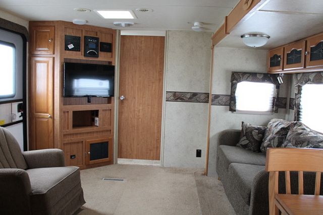 This 2011 Flagstaff By Forest River has an Electric Tongue Jack for ease in hitching and unhitching, Features include....2 Slide-outs, 1 Roof A/C, Double Door Refrigerator, Main Awning, CD Radio, TV, DVD Player, Outside Shower, Microwave, 3 Burner Range and Oven. Head out to your favorite spot with this Flagstaff in tow.