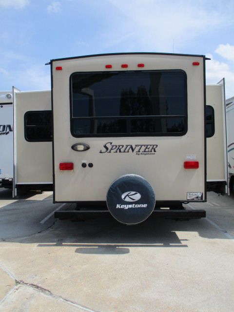 A MUST SEE ! This 2014 Sprinter By Keystone has all the comforts of home. Features that include....An Electric Tongue Jack, 3 Slide-outs, 2 Ducted Roof A/Cs, Double Door Refrigerator, Main Awning, Washer/Dryer Connections, CD Radio, Outside Shower and Speakers, TV, DVD Player, Microwave, 3 Burner Range and Oven. You will never miss home again while on the road with all the Conveniences that you have at home in this Sprinter.