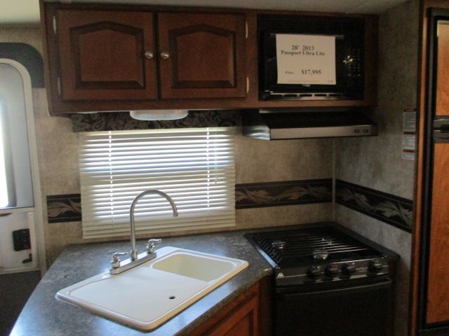 This 2013 Passport Ultra Lite has a 1 Slide-out, 1 Ducted Roof A/C, Double Door Refrigerator, Main Awning, CD Radio, Outside Speakers, TV, DVD Player, Outside Shower, Microwave, 3 Burner Range, Oven.Wonderful for either weekend outings or those long summer vacations. Let's go RVing!