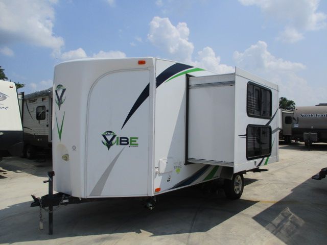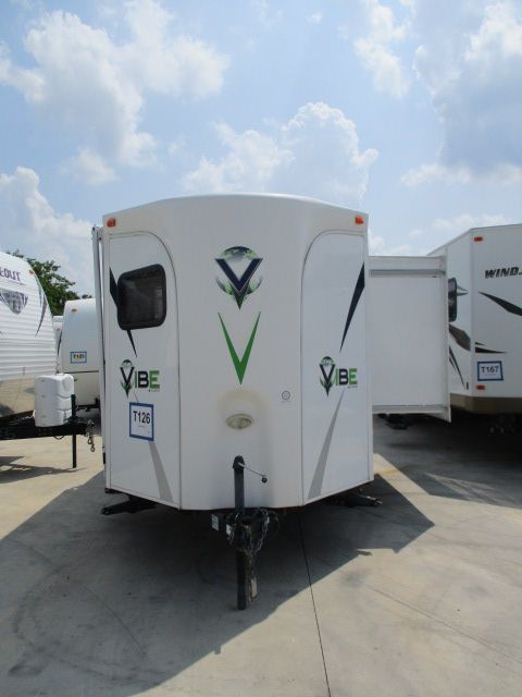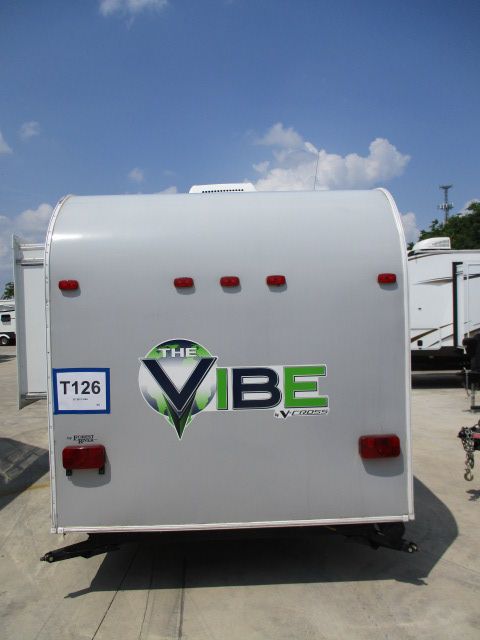 Wow ! Nice Layout thats great for the whole family. This 2013 Vibe by Forest River sleeps up to 4. It's Comforts include....1 Slide-out, 1 Roof A/C, 1 Door Refrigerator, Main Awning, CD Radio, Outside Speakers, DVD Player, Outside Shower, Microwave, 2 Burner Range and plenty of outside storage. Half ton towable. Let's go RVing!