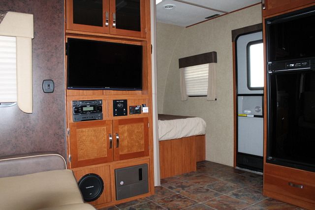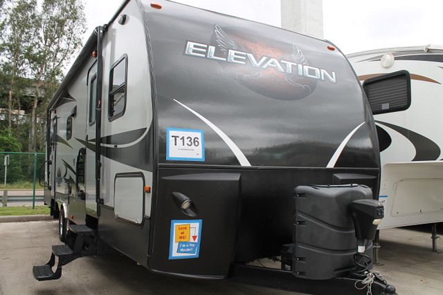 Toyhauler ! This 2014 Elevation By Crossroads sleeps 4 with a nice layout , Options include....1 Slide-out, 1 Roof A/C, Double Door Refrigerator, Main Awning, CD Radio, Outside Shower and Speakers, TV, DVD Player, Microwave and 3 Burner Range. Includes an Electric Tongue Jack for ease in hitching and unhitching.