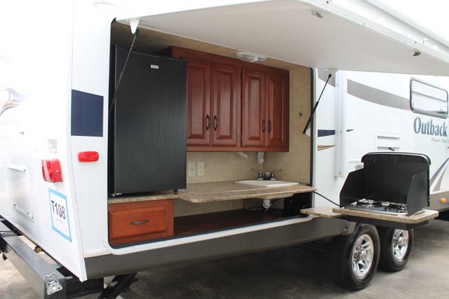 This 2012 Outback By Keystone is Light Weight, Easy to tow and has an Electric Tongue Jack for ease in hitching and unhitching. Options include....1 Slide-out, 1 Ducted Roof A/C, Double Door Refrigerator, Main Awning, CD Radio, Heated Tanks, TV, DVD Player, Microwave, 3 Burner Range and Oven. Sleeps up to 6 with a rear bathroom and plenty of privacy. Bonus: Also includes Outside Speakers and a Very Nice Outdoor Kitchen for great family meals. Come on by and see this Outback Today!