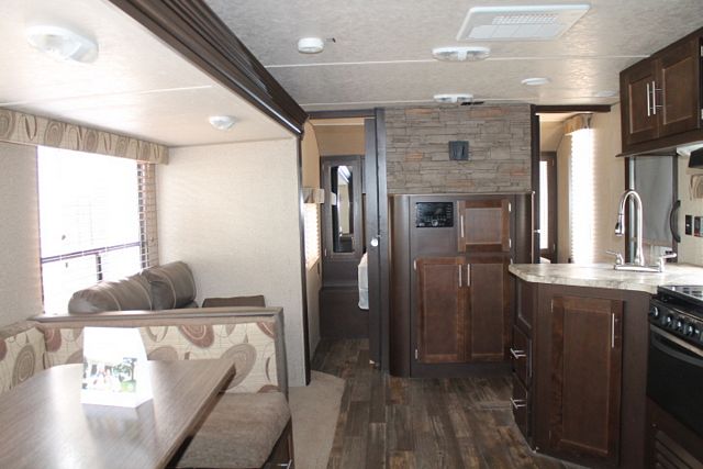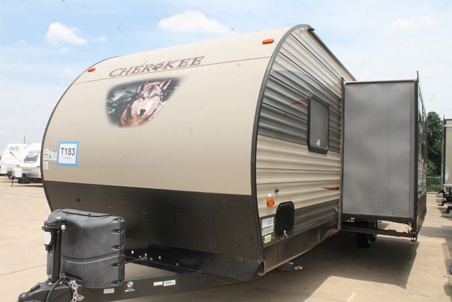 Adult Size Bunks ! This 2015 Cherokee By Forest River has a really nice layout with plenty of storage space. Features include....Electric Tongue Jack, 1 Slide-out, 2 Ducted Roof A/Cs, Double Door Refrigerator, Main Awning, CD Radio, Outside Shower and Speakers, DVD Player, Microwave and 3 Burner Range. This Cherokee is great for any and all of your travels with plenty of room for everyone. A Must See!