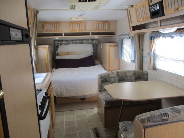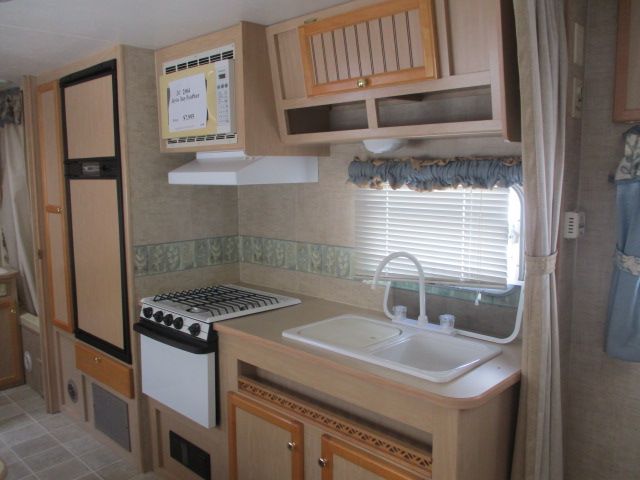 This 2004 Jayco Jay Feather has a 1 Ducted Roof A/C, 2g/E Refrigerator, Main Awning, CD Radio, Outside Shower, Microwave, 3 Burner Range, Oven