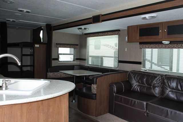 Spend quailty time together in This 2015 Aspen Trail By Dutchmen. It has a nice bunkhouse floor plan that sleeps up to 10 and is perfect for weekend get aways. Comforts include....1 Slide-out, 1 Ducted Roof A/C, Double Door Refrigerator, Main Awning, CD Radio, Outside Shower and Speakers, DVD Player, Microwave, 3 Burner Range and Oven. Gather the family and hit the road to your favorite spot.